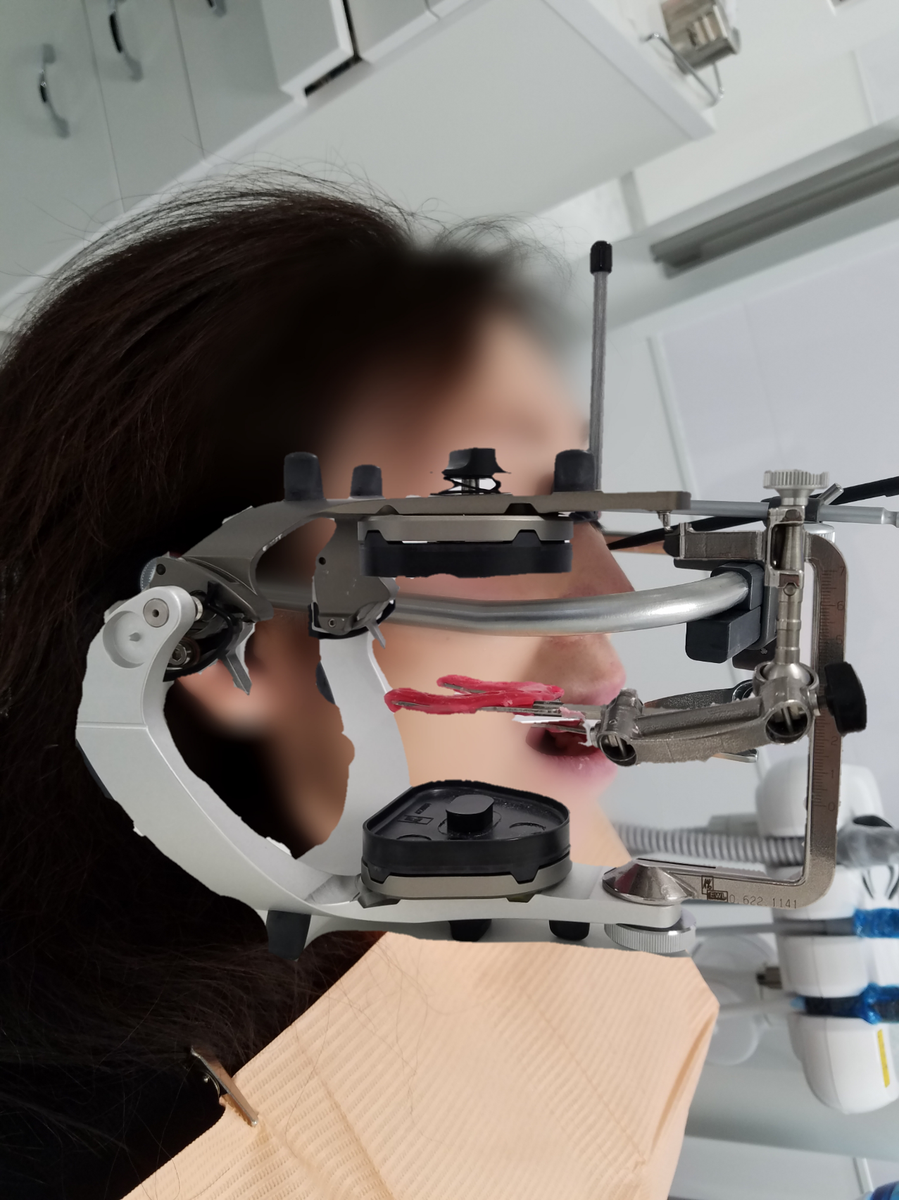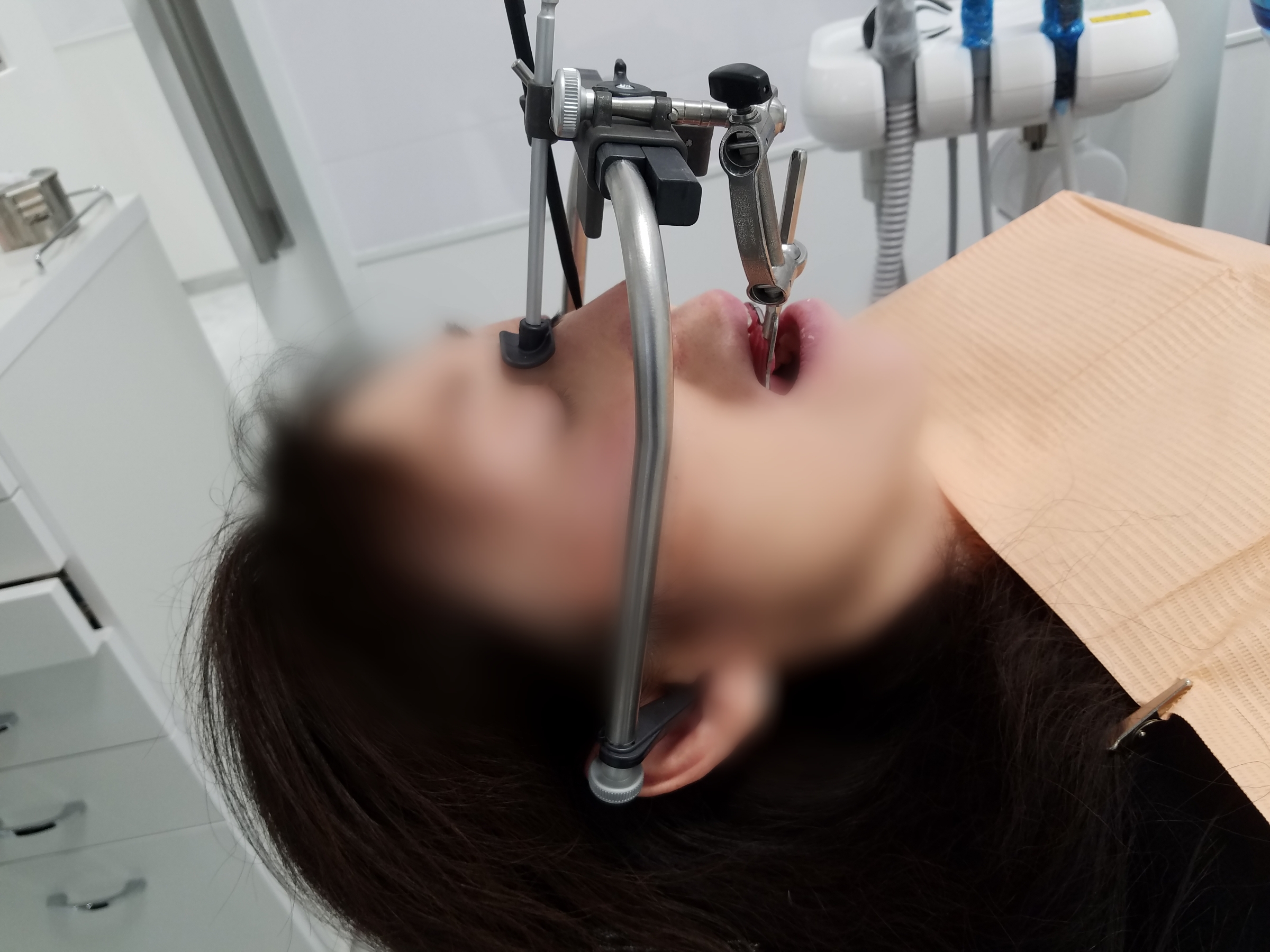 お口の模型を装着することで、患者さんの噛み合わせを再現することができます。