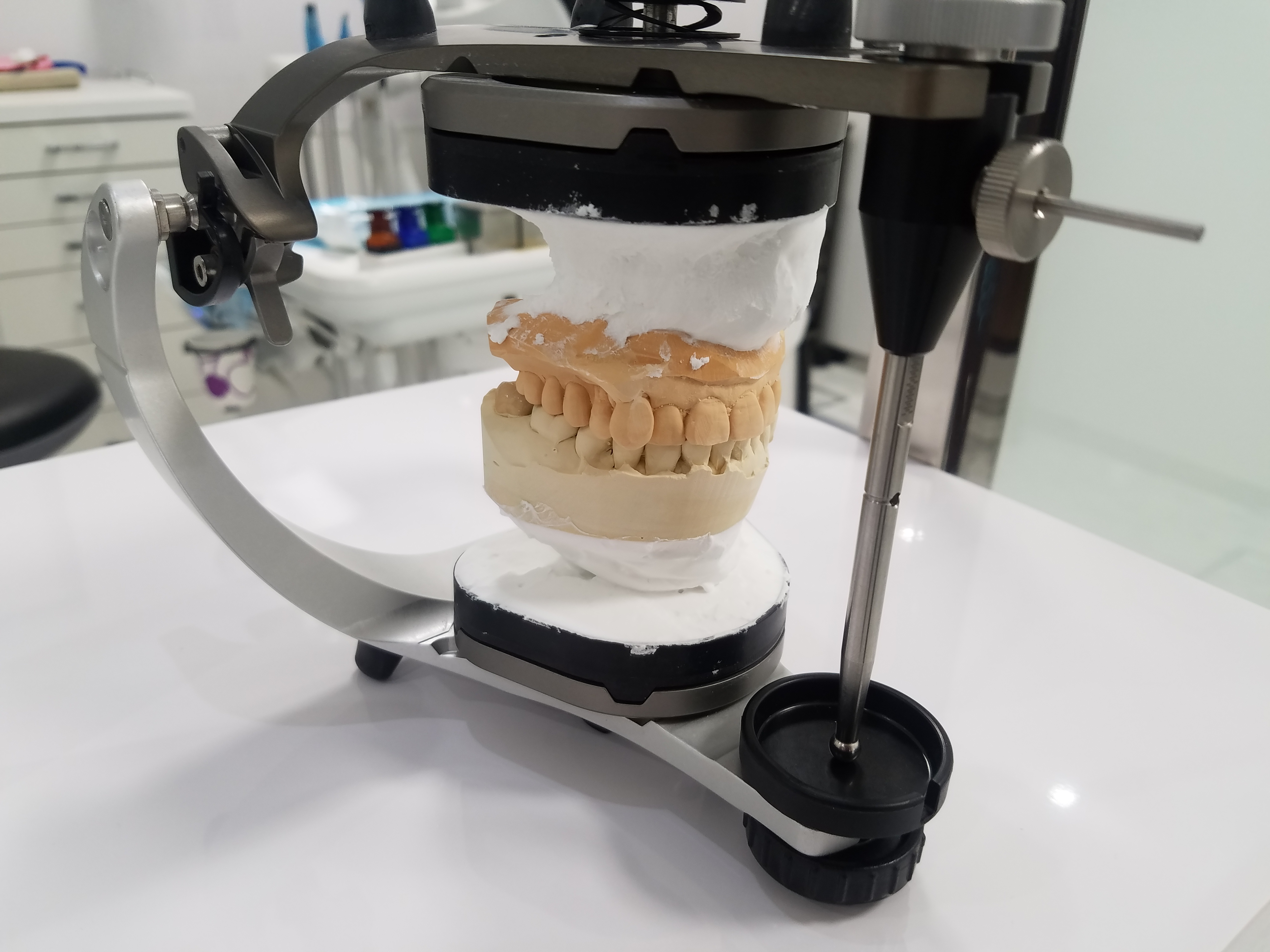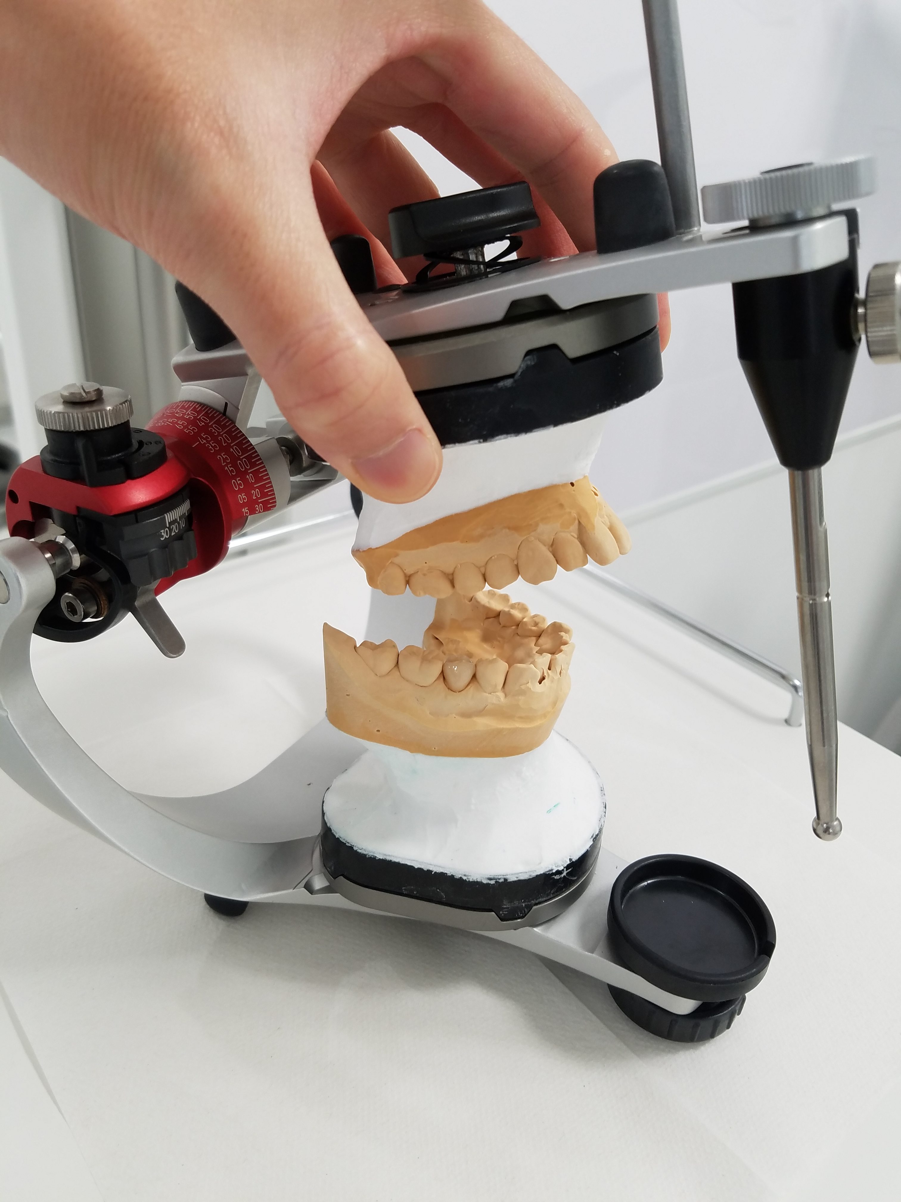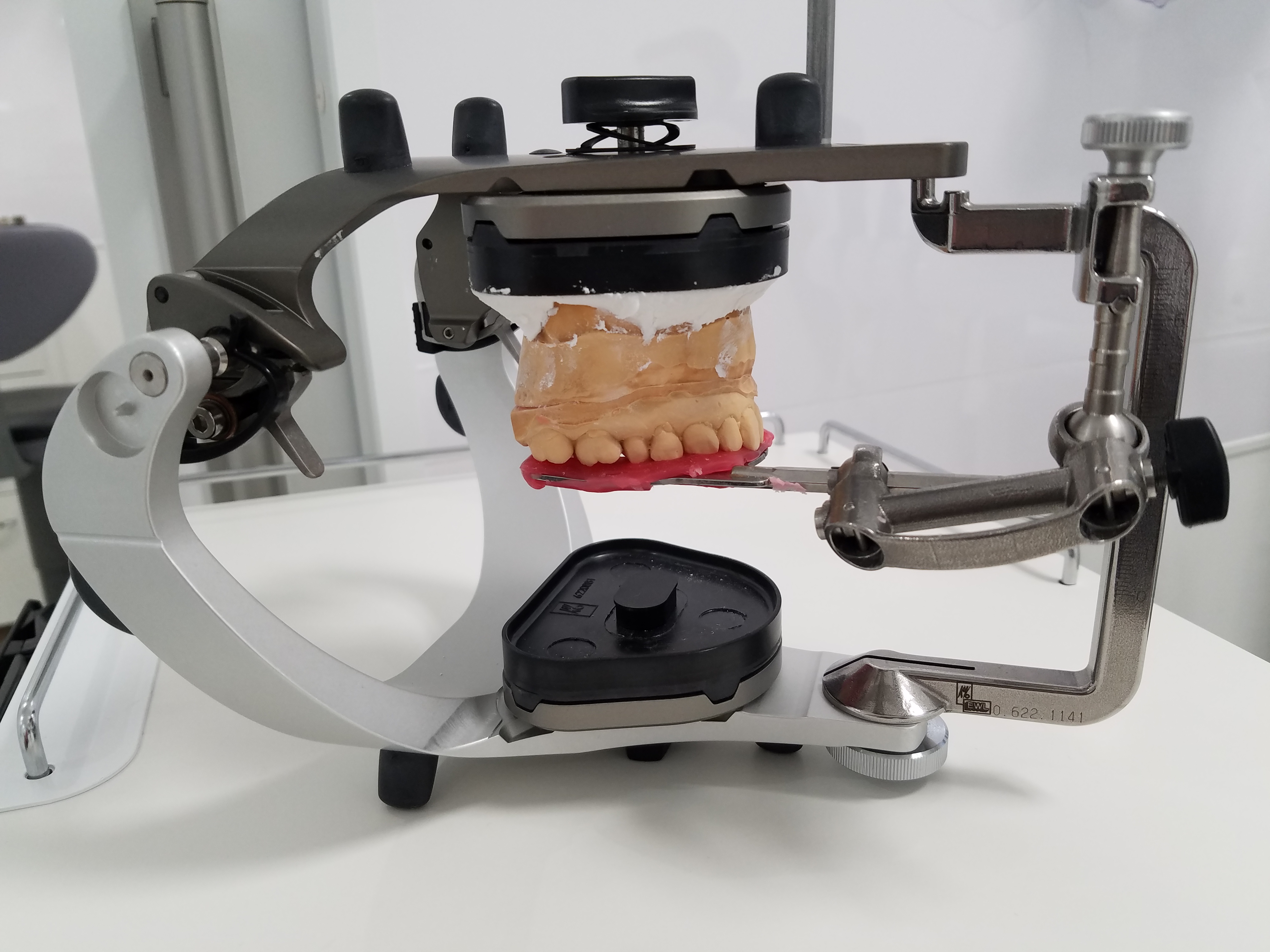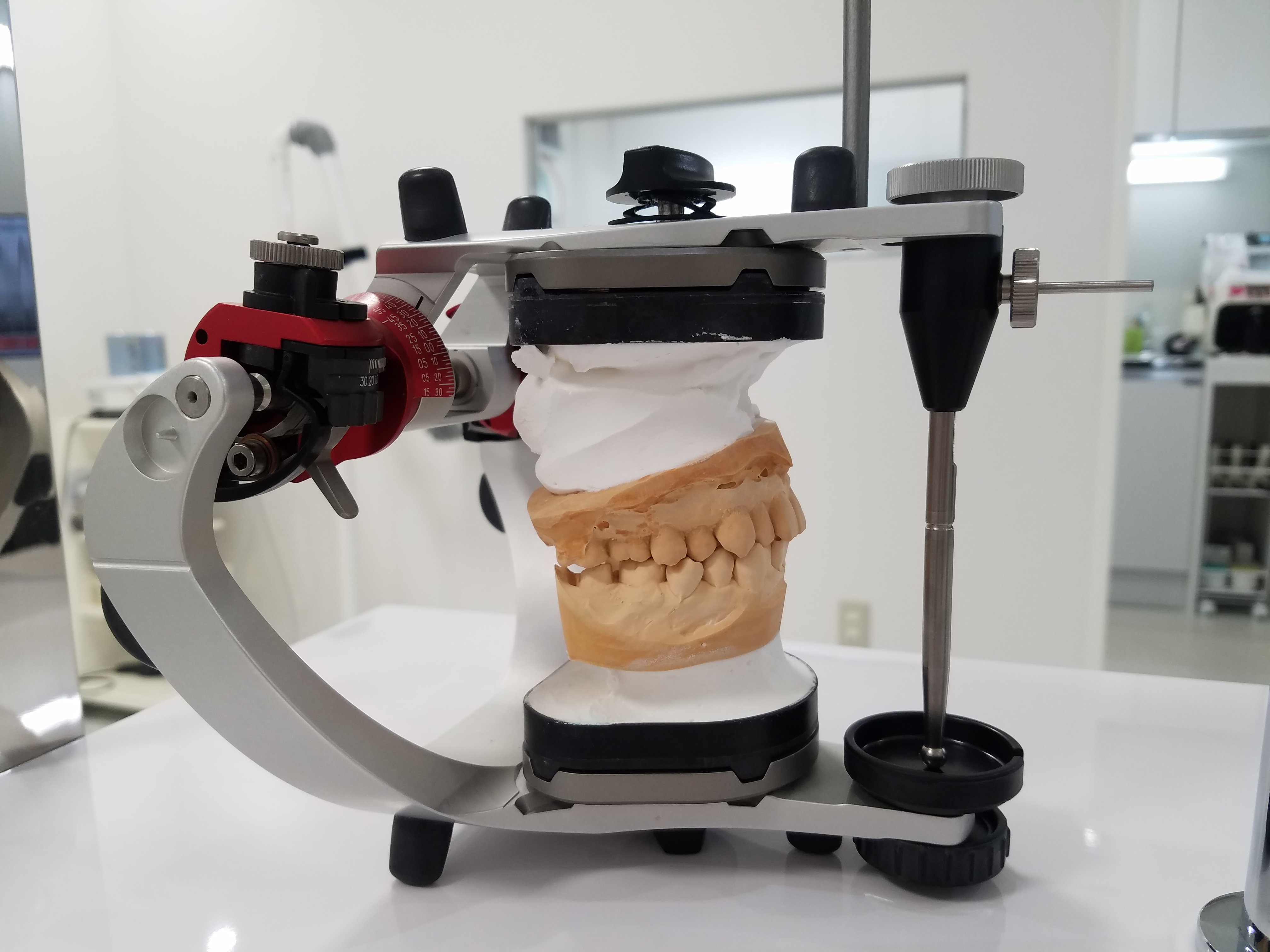 患者さんの顎の動きや、噛み合わせを再現する「コピーロボット」のようなものなので、精度が高く再現できると、噛み合わせの診査や、精密な補綴物を作製できます。