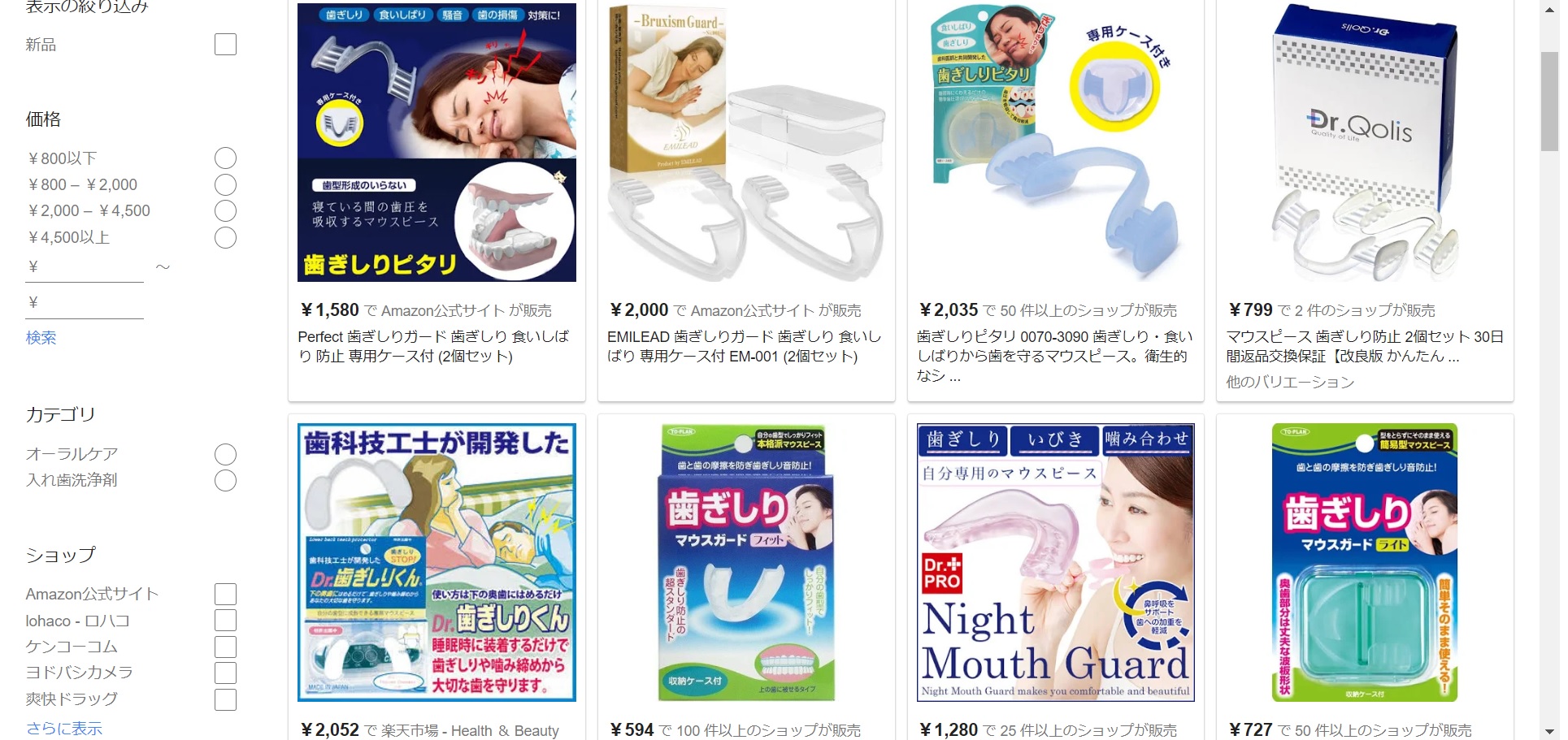 ネットで調べると睡眠時のマウスピースがたくさんあります。