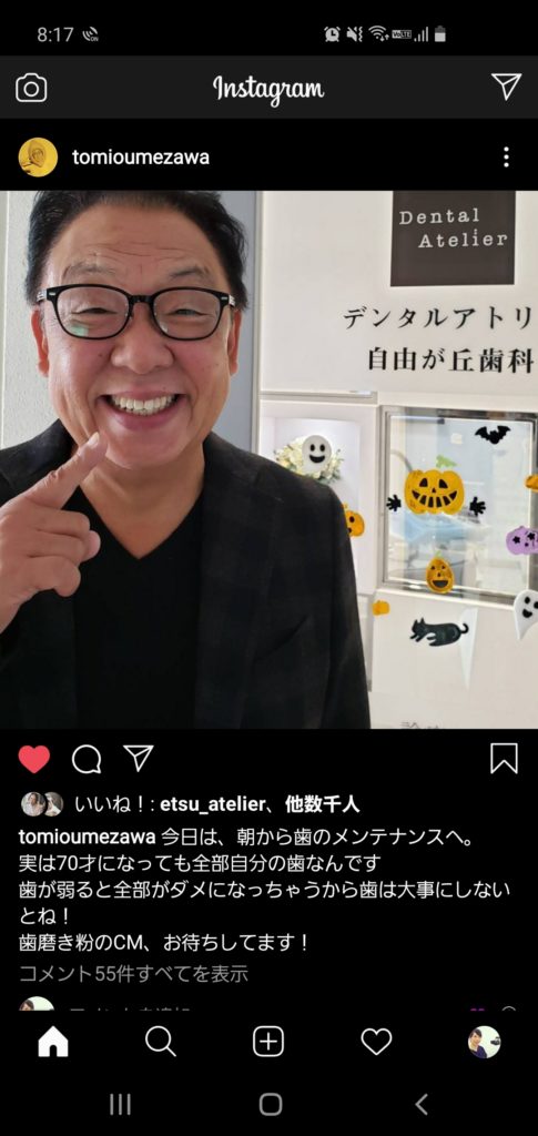 10月にお口のメンテナンスにお越しいただいた梅沢富美男さん。