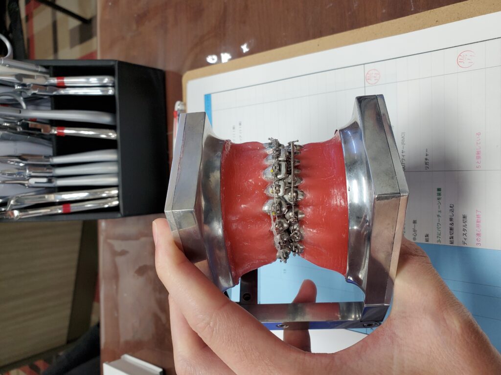 自分でワイヤーに加工を加えて、歯を動かします。
