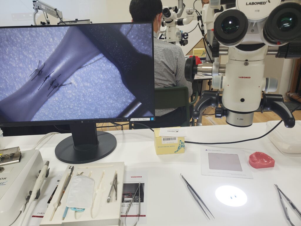 医科では血管縫合や神経縫合など行いますが、歯科の口腔内では大きな血管はありませんので、実際はしません。あくまでトレーニングですね(*‘ω‘ *)