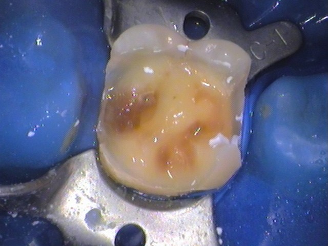 銀歯を外してみると、歯の内部で茶色い虫歯が広がっています。