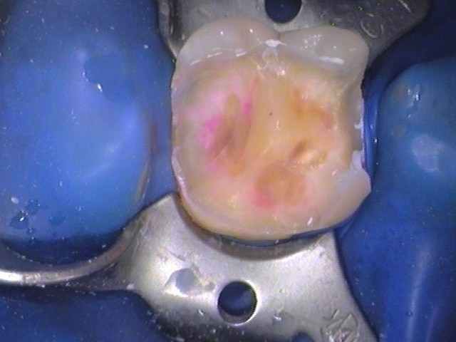 う蝕検知液を使って丁寧に虫歯を確認しないと、取り残しする可能性があります。