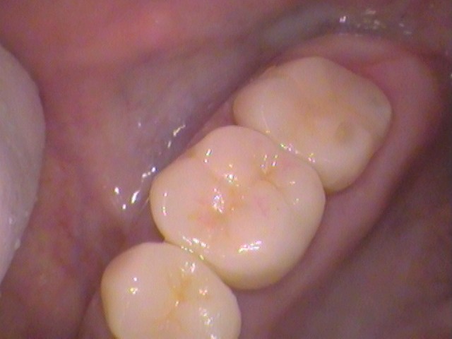 虫歯が大きい箇所はセメントで埋めて、その上から銀歯をかぶせてあります。