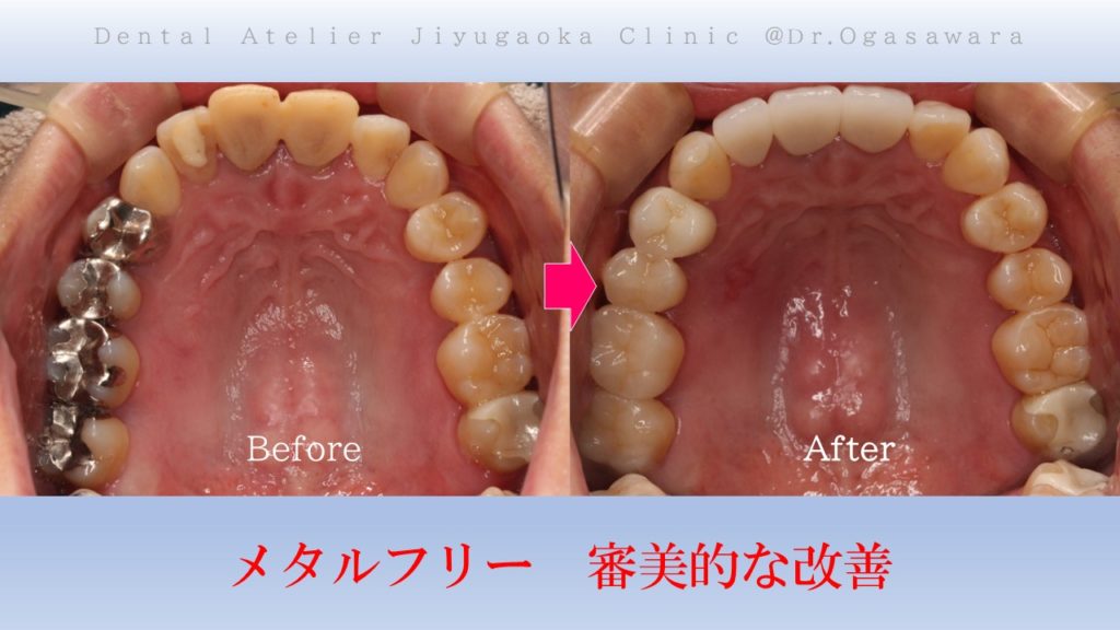 前の歯医者では治療がなかなか進まない。銀歯もセラミックに交換して審美治療。