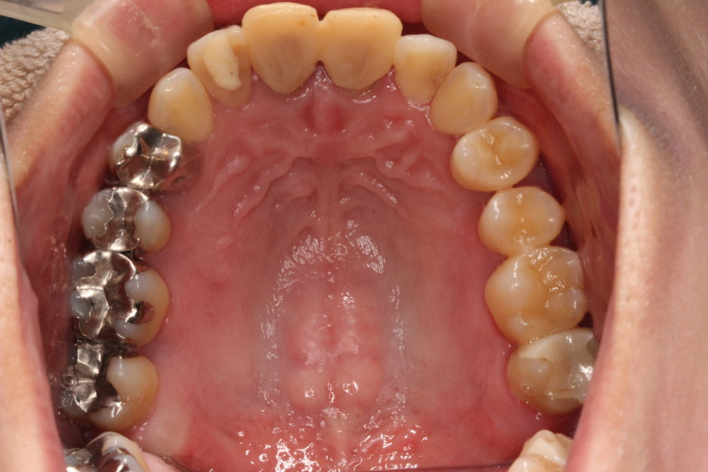 古い銀歯が入っている箇所もあります。古い銀歯がズレて汚れが溜まってしまい、歯周病を助長させていました。このような不適合修復物は早めに撤去することで、衛生状態を良くすることが出来ます。