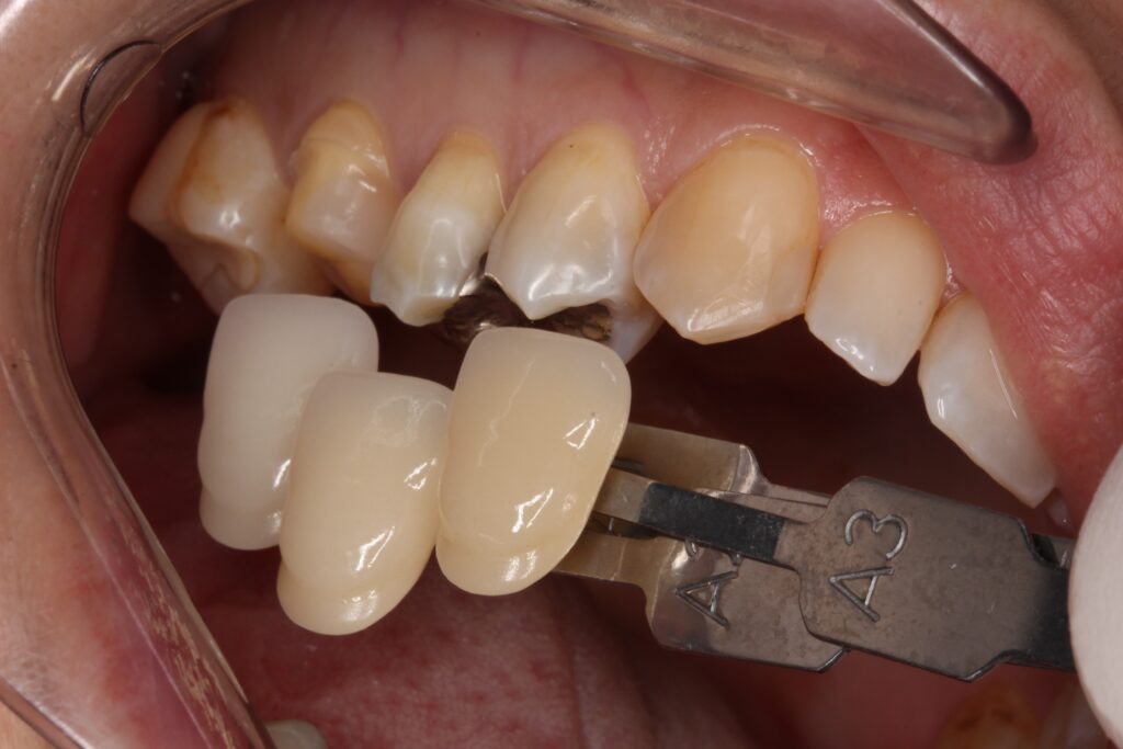 この後は、削ったところをレジンで保護し、色合わせをして、型取りまでします。