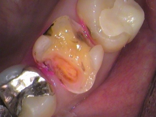 虫歯を取り切りました。一度治療した歯の再治療なので、かなり大きく歯が無くなってしまいました。