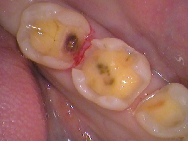 内部に黒い虫歯が認められます。