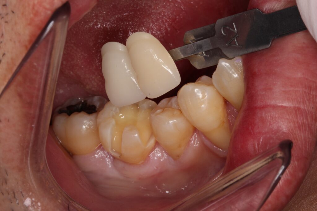 歯の色合わせを行い、セラミックを製作します。