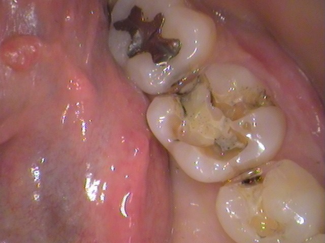 一番奥歯に、むし歯と銀歯が残っていますが、今回は同日には治療していません。