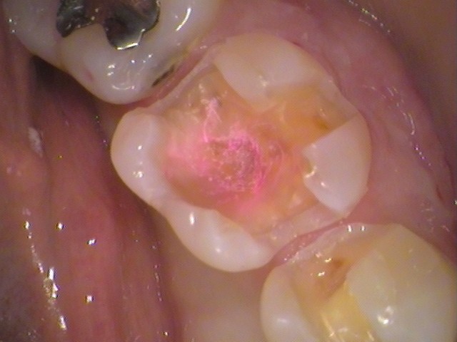 こちらの患者さんはむし歯をしっかりと取り除き、神経までは達していませんでしたので、神経を残して治療を行います。