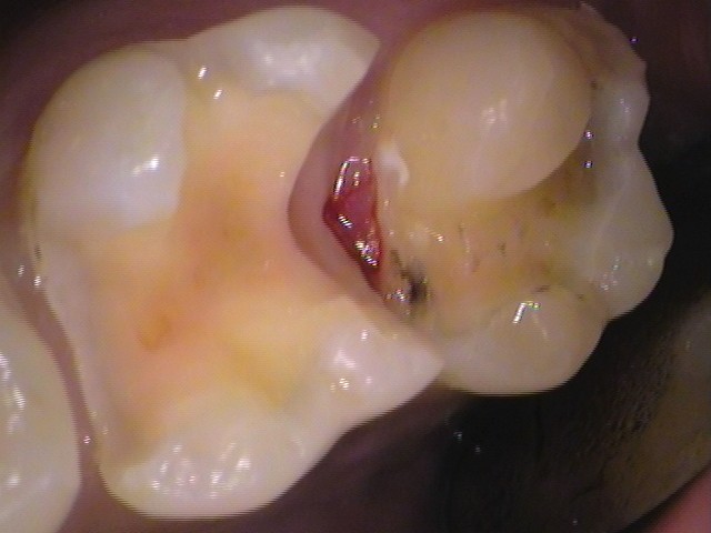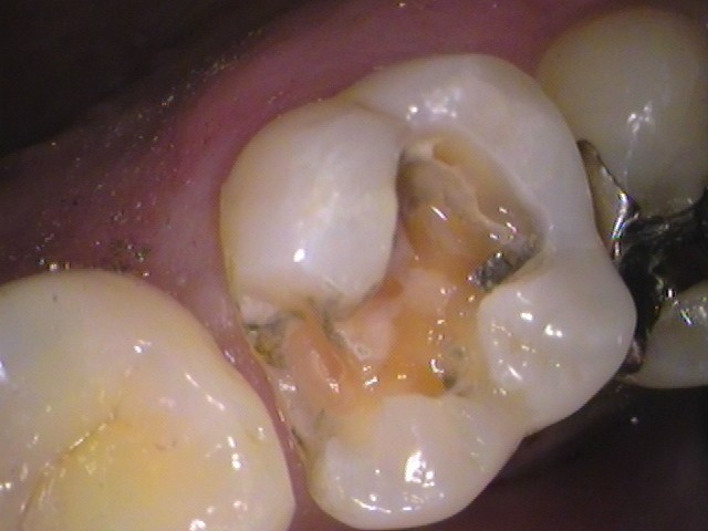 元々、こちらの歯は症状が無く、本人も気づいていないむし歯でした。