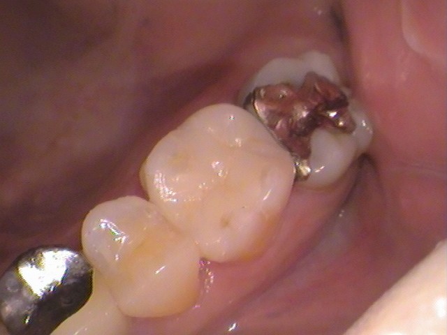 6番目と7番目の歯に銀歯が入っています。