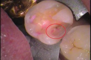 虫歯が大きかったので詰め物をして、神経を保護してあります。
