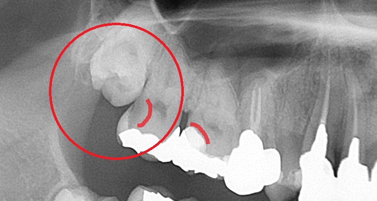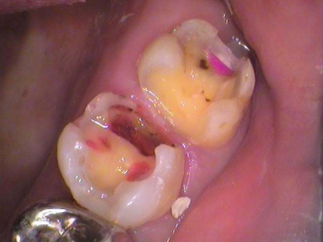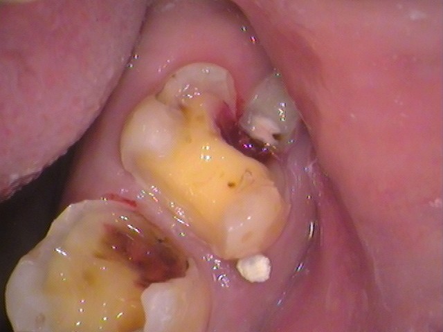 そして、親知らずが当たっている手前の歯がむし歯になっています。