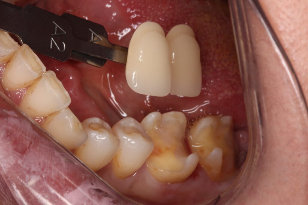 歯の色を記録して、セラミックを製作します。