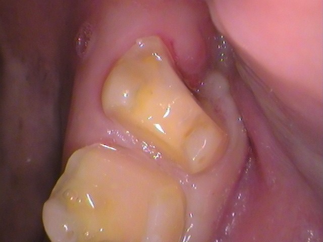 長年、親知らずが中途半端に生え、手前の歯と隙間を作り、むし歯になってしまいました。