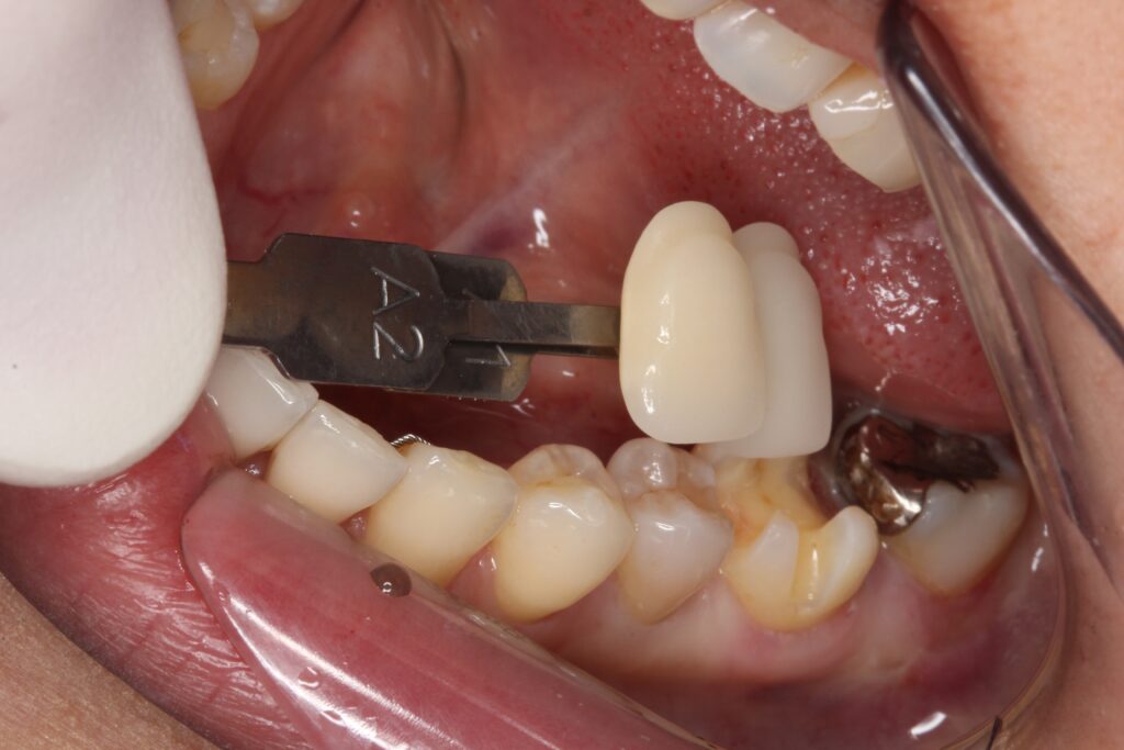 歯の色を写真で記録し、歯科技工士にセラミックインレーを製作してもらいます。