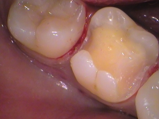 奥歯との間から虫歯の侵入がありました。