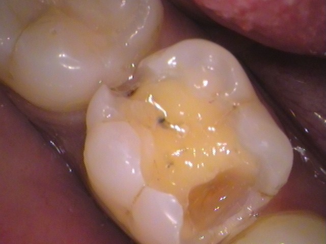 虫歯を外すと、多少の汚れが見とれます。