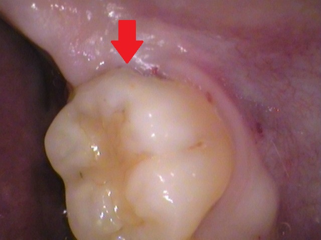 一番奥の歯なので、奥に歯ぐきが見えます。