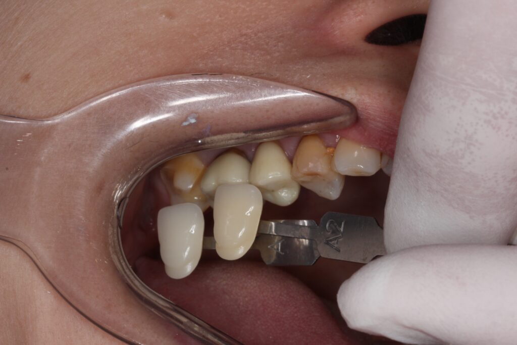 歯の色を記録して、歯科技工士がその方に合った歯を製作します。