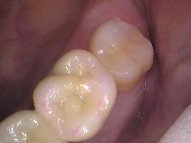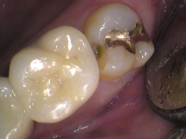一番奥の歯に金歯(ゴールドインレー)が入っています。