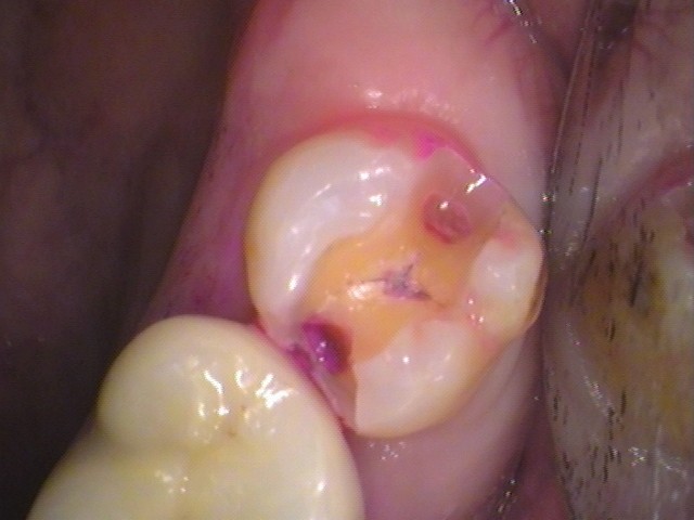 歯を削って行くと、内部に黒い虫歯が見えてきました。