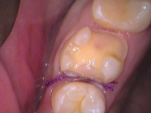当院で新しく製作したセラミックインレーがセットされた状態です。