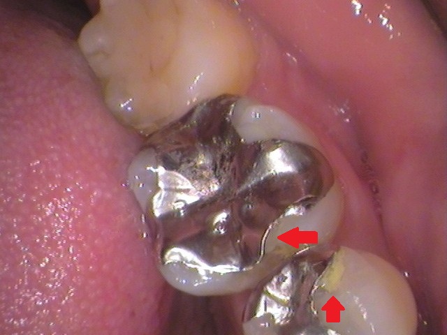 歯からズレて銀歯が浮き上がってしまっている箇所や、歯と銀歯の境目に汚れが溜まっている箇所が見られます。