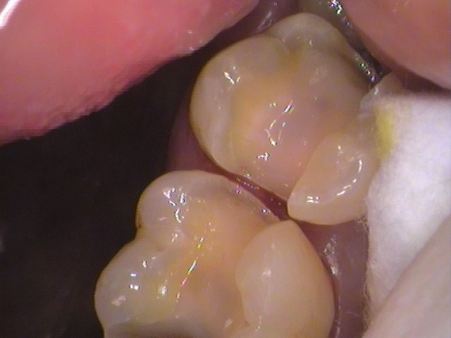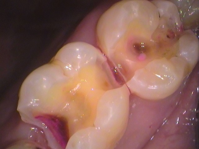 歯と歯の間の虫歯は、そこまで染色されず、広がりは少なかったです。