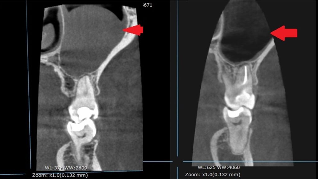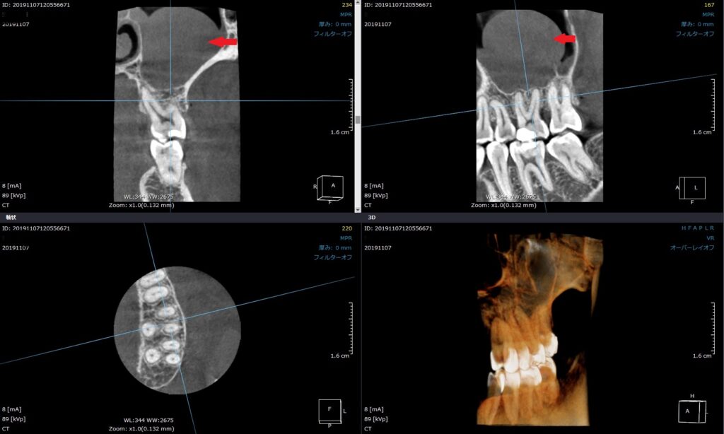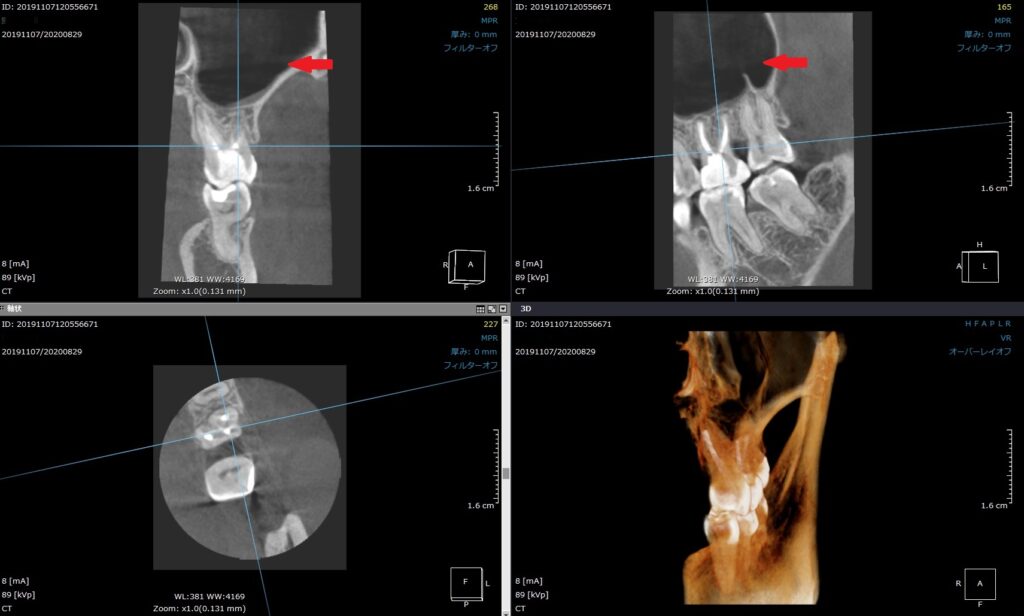 ここは上の奥歯の上に位置する「上顎洞(副鼻腔)」と呼ばれる、