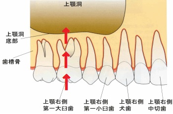上の奥歯は、歯の根っこが上顎洞に近いために、